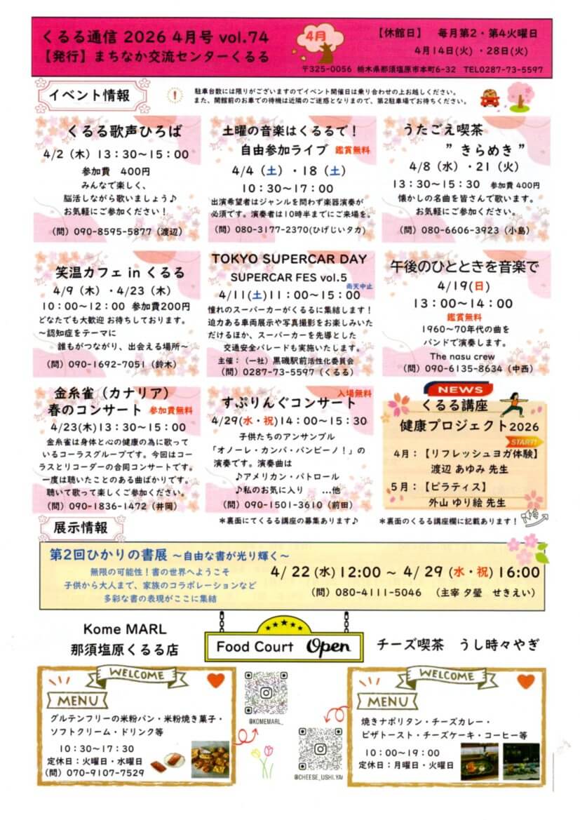 【まちなか交流センターくるる】4月の予定